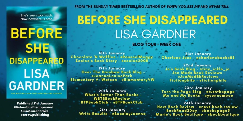 I’m delighted to be taking part in the blog tour for Before She Disappeared, Lisa Gardner’s first standalone novel in over ten years. I haven’t read a lot of her work, but I really enjoyed 2020’s When You See Me, and I was immediately intrigued by the premise of her latest novel.